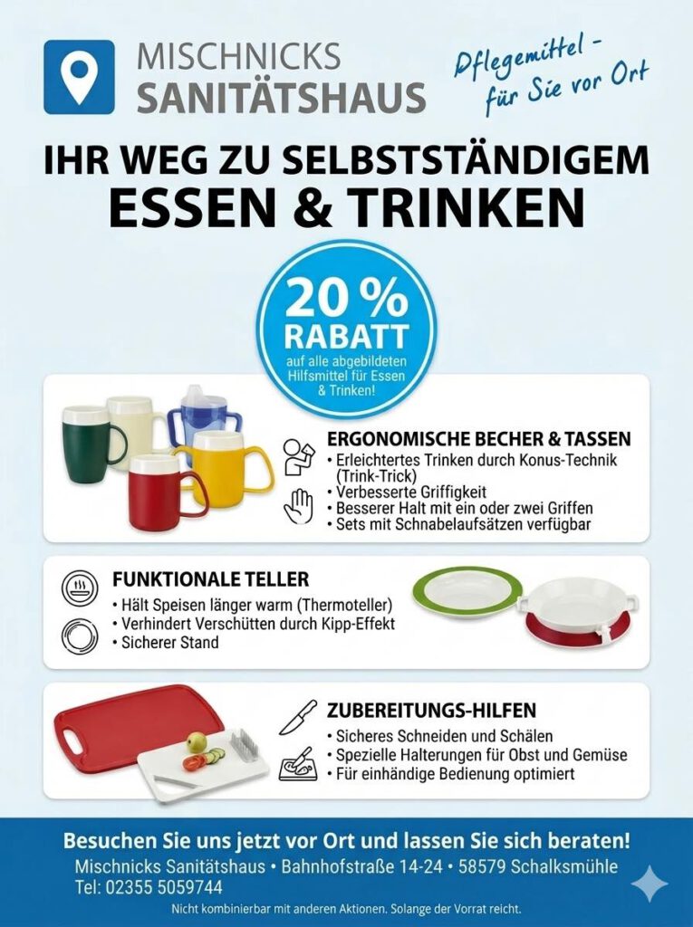 Besuchen Sie uns in der Bahnhofstraße 14-24 in Schalksmühle und entdecken Sie unsere ergonomischen Becher, warmhaltenden Teller und praktischen Zubereitungshilfen.